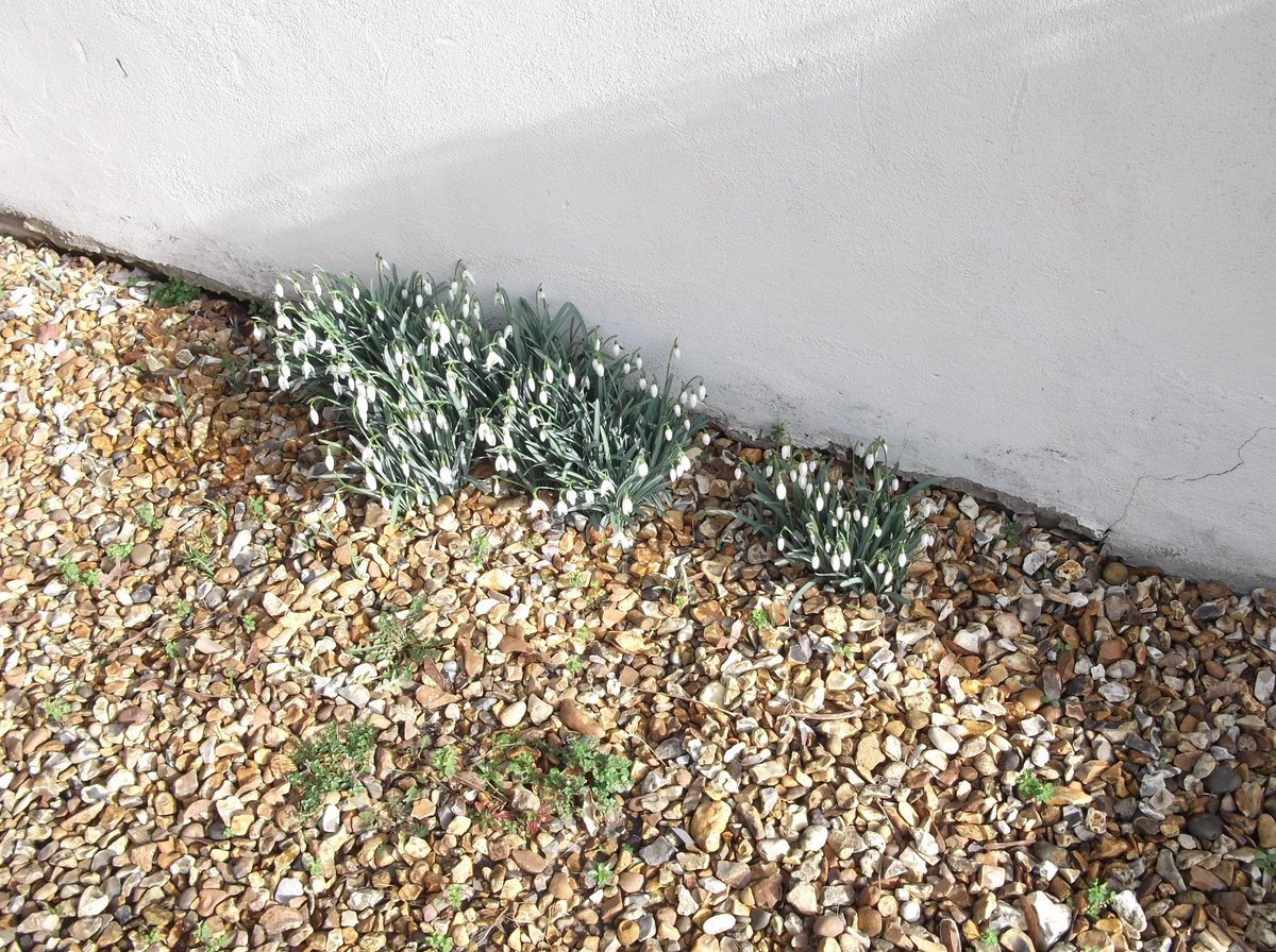 This hardy clump of snowdrops growing through the gravel gets bigger every year. The inspiration for this lampshade made a little while ago.