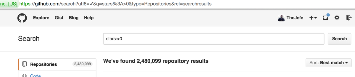 @Carols10cents @github https://octoverse.github.com/ says there were 5.9 million new repos in 2013 alone (not updated for 2014, sadly)