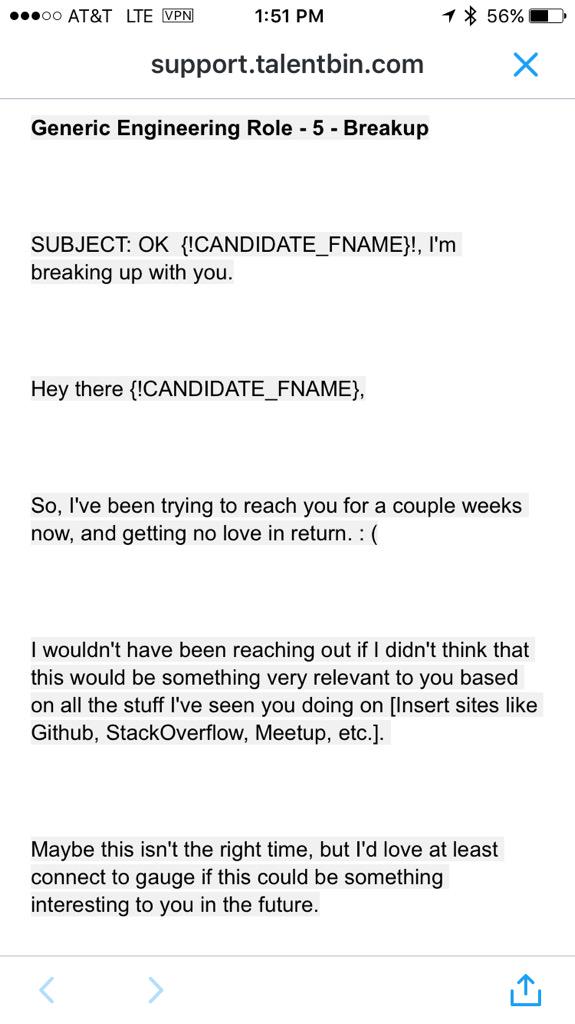 Wow this is a real recruiting template from @talentbinhiring. Look at the subject. (via @Carols10cents)pic.twitter.com/JeMBVJjDcx
