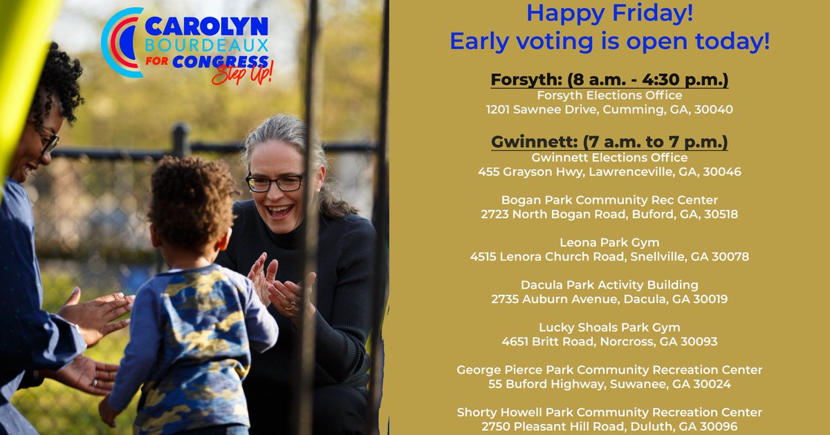 11 days to go! We are in the final stretch now. Every hour is precious as we’re fighting hard to earn every vote. I would be honored to represent our incredible district in Congress. But first, we all must vote! Early voting is open! #GA07