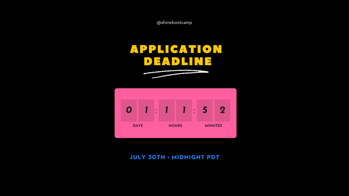 @shinebootcamp Speaker Accelerator program! Well... actually it's 1 day, 11 hours, 52 minutes as of *right now*