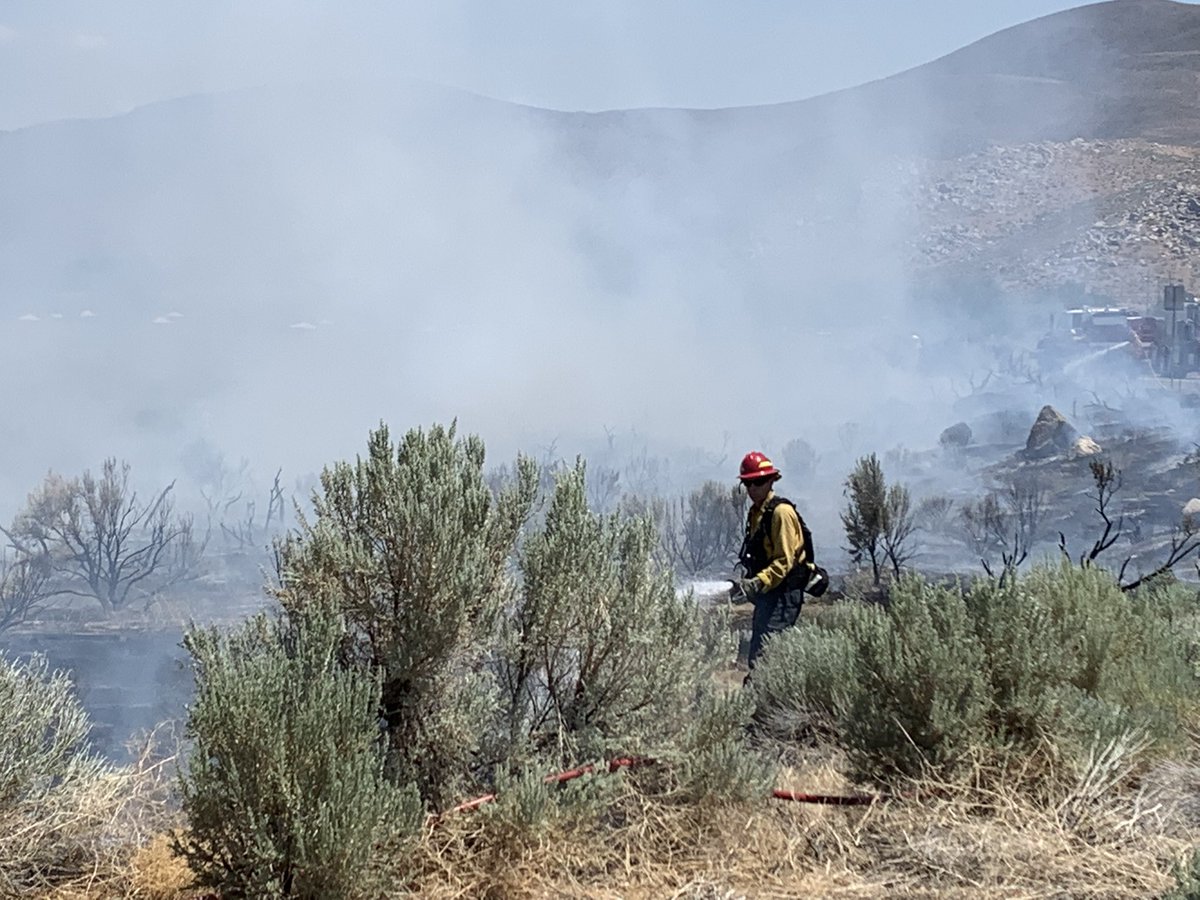 Eastlake Blvd closed just east of I-580 exit ramp in southern Washoe Valley due to fire. Drive safely/give room to first responders if traveling I-580 in the area.