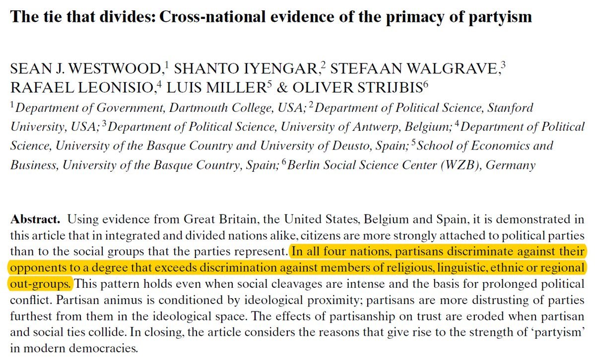 Prejudice based on political affiliation is stronger these days than prejudice based on race, ethnicity, language, or religion http://onlinelibrary.wiley.com/doi/10.1111/1475-6765.12228/full …pic.twitter.com/SO1PaNon4F