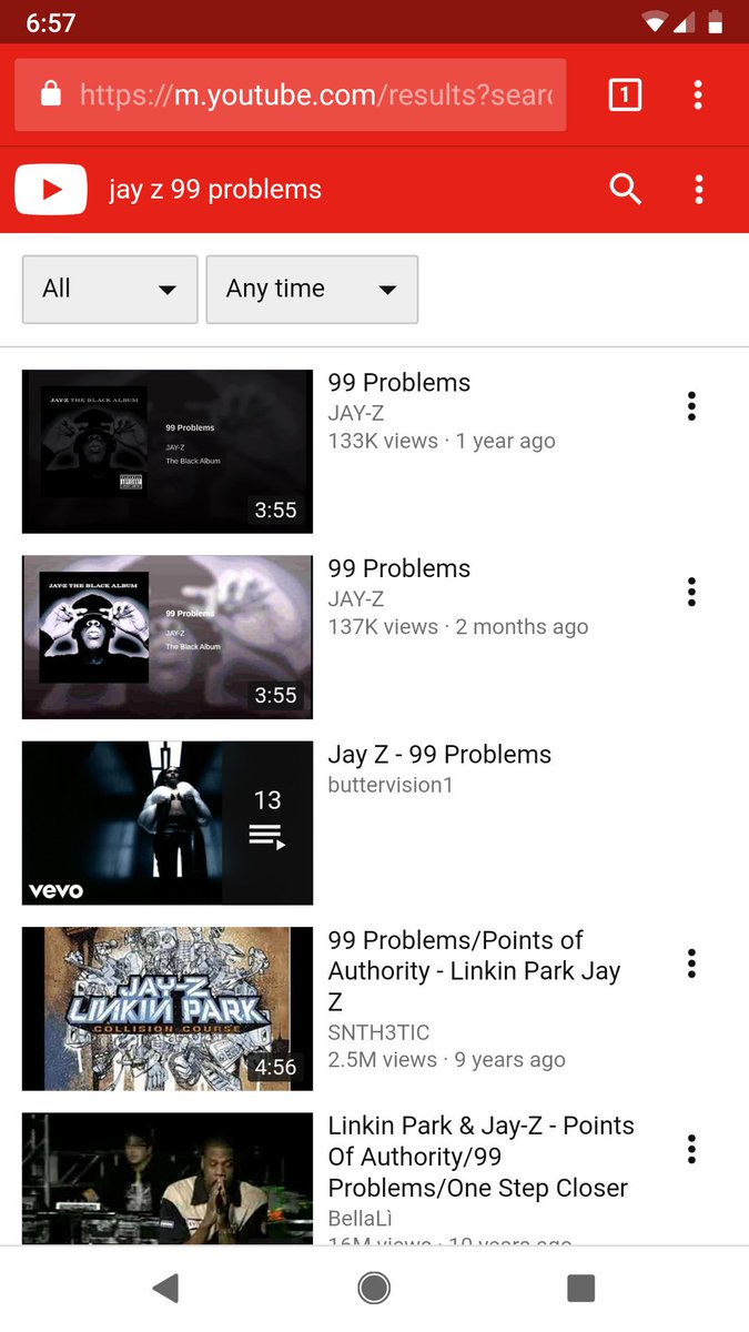 I am just questioning why I can't find 99 Problems by Jay-Z on @YouTube. It's a good song and a good music video