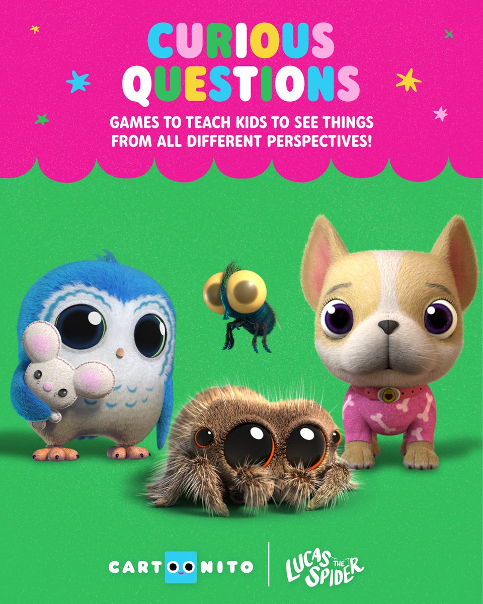 Lucas the Spider teaches kids how to see different perspectives. Play the Curious Questions game with your little spider to help them understand other people's points of view!