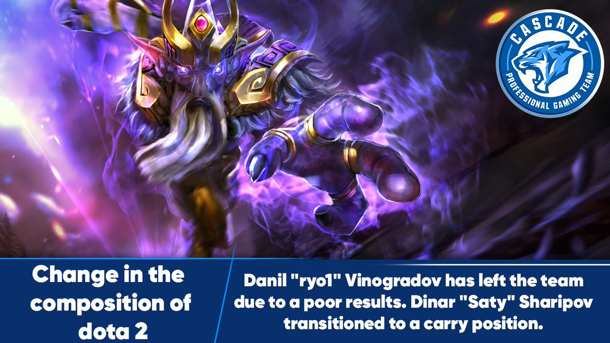 Dota2 | Cascade roster changes 🇷🇺 Danil "ryo1" Vinogradov has left the team due to a poor results. Although, during these time we have tested a number of different players for replacement. In addition, 🇷🇺 Dinar "Saty" Sharipov transitioned to a carry position. #Cascade #dota2pic.twitter.com/GX7CyZQxr0