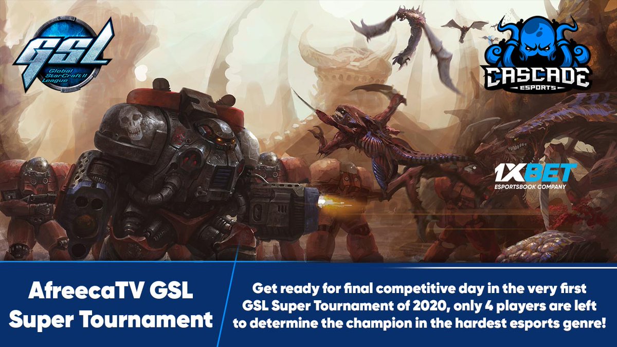 🏆@afreecaTV_gl #GSL Super Tournament | Final day Tune in on Suturday at 9:00 CET for both semi-finals & grand-finale! 🇰🇷@JinAir_Trap vs. 🇰🇷@sc2Dark 🇰🇷Maru vs. 🇰🇷@TSG_Solar ➡️Odds: http://bit.ly/afreecatv-gsl-st … ➡️Stream: http://play.afreecatv.com/gslenglish  #starcraft2 #cascade #1xBet #esportspic.twitter.com/AAIlaiCEck