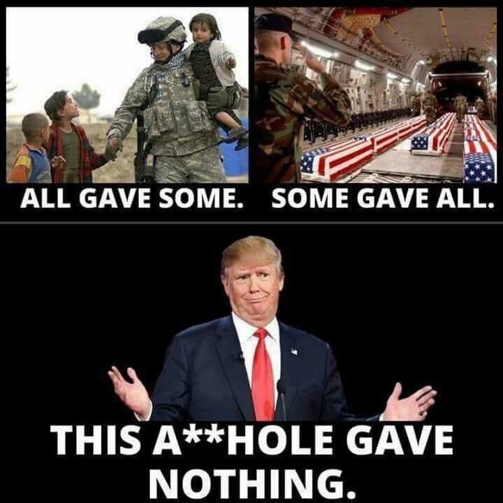These brave men and women are rolling over in their graves. Many military officials, right now, are condemning Captain Bone Spurs