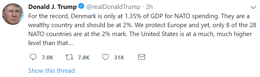 We're like three days away from him threatening sanctions on Denmark and suggesting that they shouldn't be part of NATO because they are mean to him.