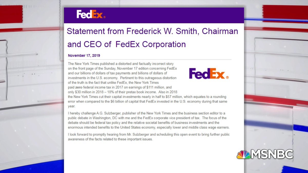 FedEx should be paying their fair share of the military airbases we are giving to Russia. @realDonaldTrumphttps://twitter.com/SRuhle/status/1196519901911011328 …
