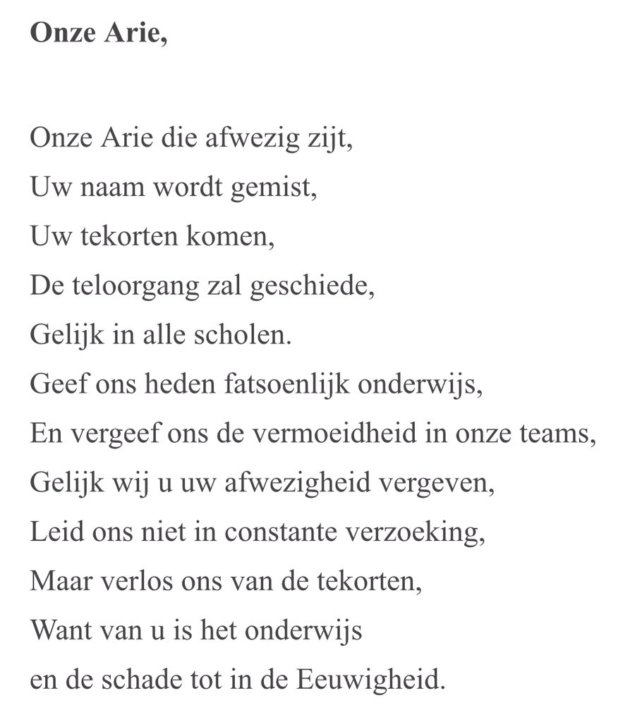 Het Onze Arie. Gebed door Eric van ‘t Zelfde. https://www.lerareninactie.nl/Toespraak_Eric_van_%E2%80%99t_Zelfde_30_januari …pic.twitter.com/g54NB6QACn