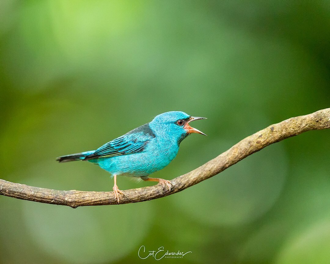 A female Red-legged Honeycreeper .. the females usually have quite pale legs but this ones were quite vibrant. © Cat Edwardes Photography
