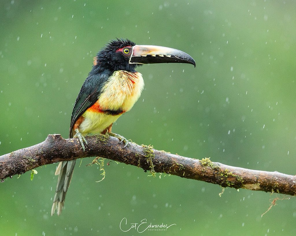 A Collared Aracari perched in the light rain in Costa Rica © Cat Edwardes Photography