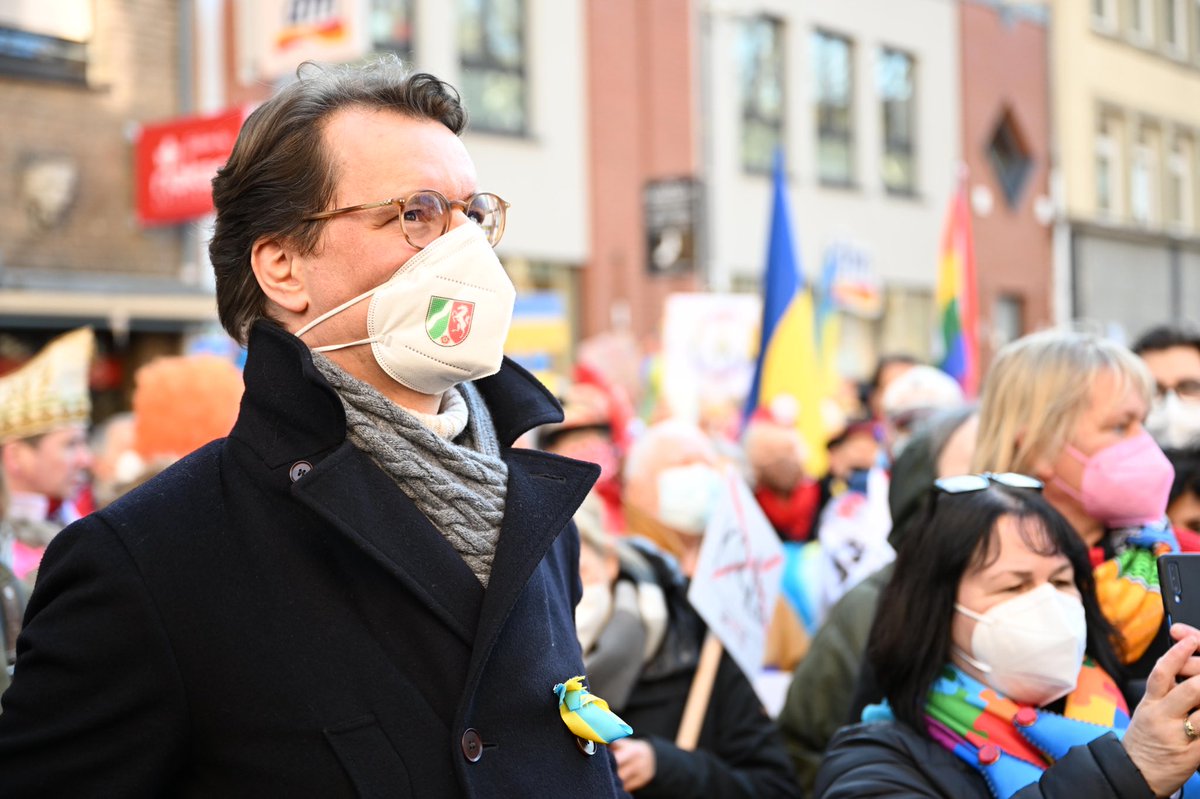 #Köln zeigt#Solidarität mit der#Ukraine: statt des Rosenmontagszugs gibt es heute eine große Friedensdemonstration. Auch Ministerpräsident@HendrikWuest nimmt teil. „Ein starkes Zeichen“, so der Ministerpräsident.pic.twitter.com/ESp1opyCms