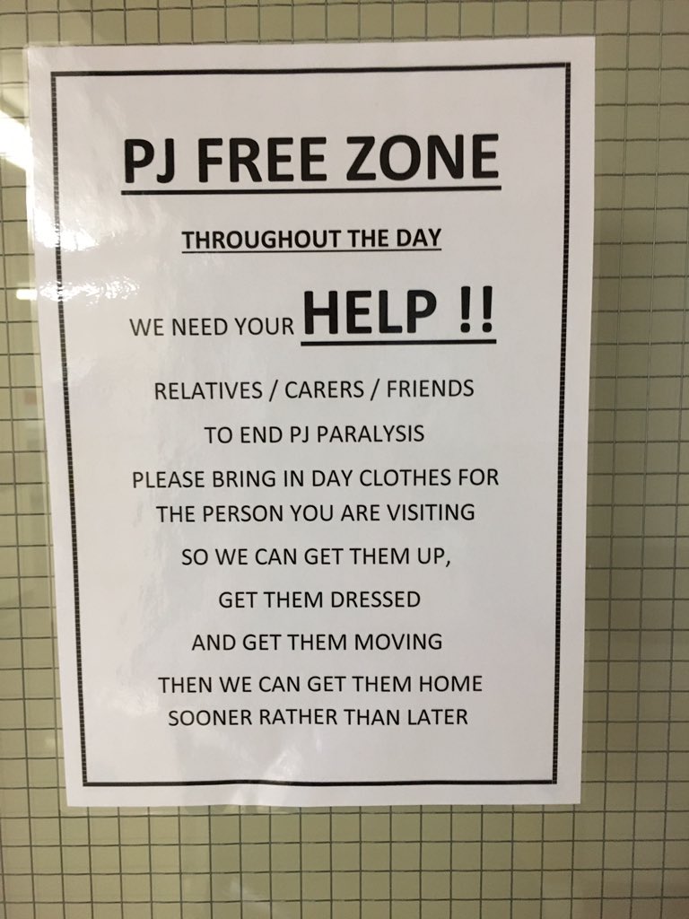 I just love this sign for its simplicity and clarity. Relatives and carers really want to do the right thing as they are the most untapped resource in healthcare and helping loved ones in hospital is good for their wellbeing too. And look at the results!