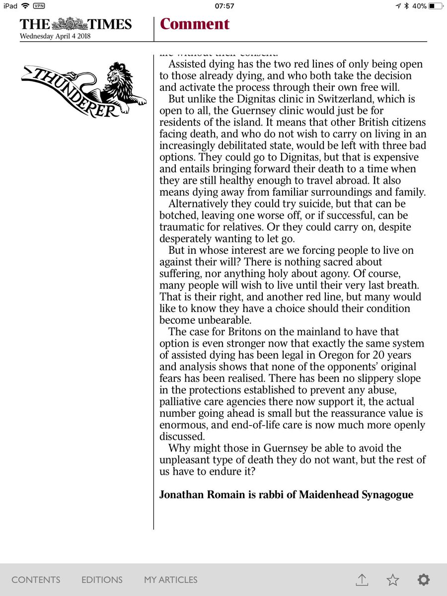 “There is nothing sacred about suffering” - well said Rabbi, and well done Guernsey for showing true moral leadership...https://twitter.com/gavinstpier/status/981426888546684930 …