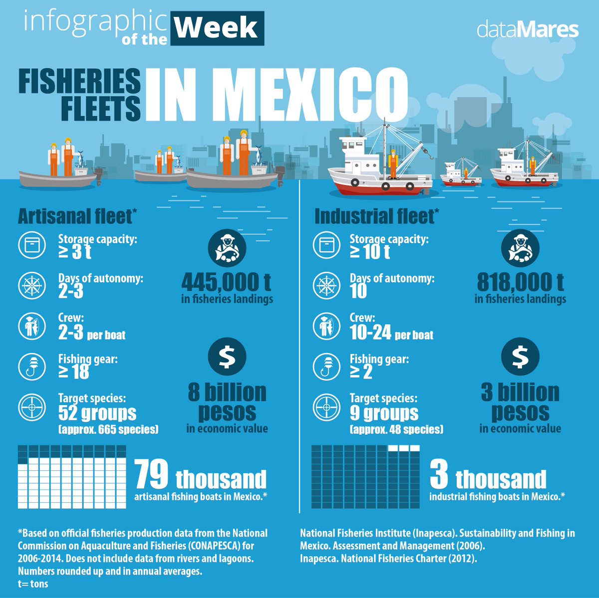 #InfographicoftheWeek What are the main differences between the industrial & artisanal fleets in Mexico?#fisheriespic.twitter.com/zIP5FTsQbT