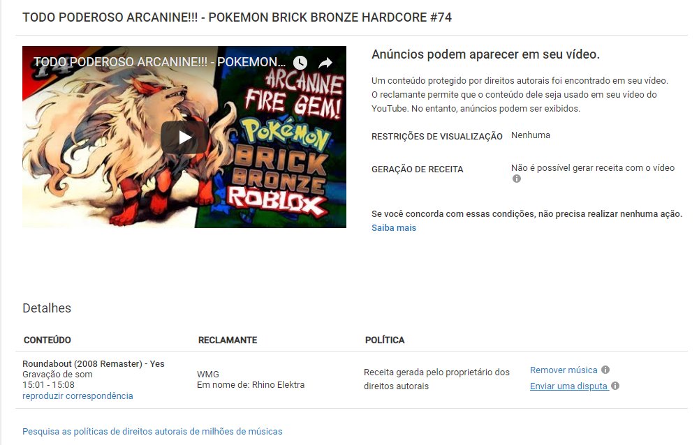 Eu basicamente usei 7 segundos de uma música (Yes - Roundabout) e me tão tentando catar a monetização do meu vídeo INTEIRA (15 minutos)