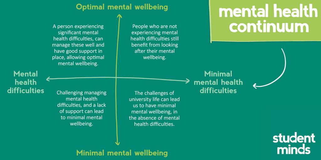 Mental health is based on a continuum and can fluctuate at different times, however, if you are experiencing prolonged difficulties and this is getting in the way of uni life, please seek support: http://ow.ly/khkL30oJX1f pic.twitter.com/l5gPgLwrED