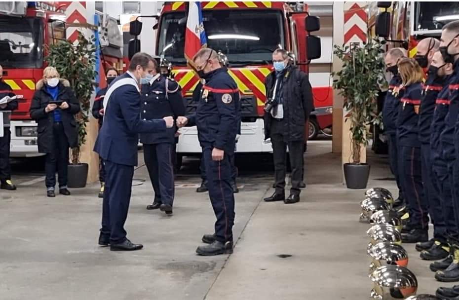 Sainte Barbe des pompiers de la caserne d'Isigny sur Mer en présence des familles et de nombreux élus. Un moment important dans l'année pour remercier nos pompiers et honorer ceux qui ont péri au cours de leur engagement