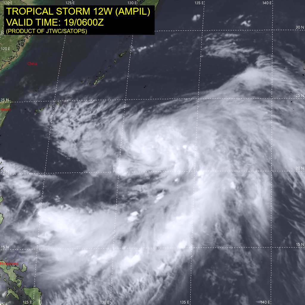 #Ampil has winds of 45mph, gusting to 60mph, with a pressure of 994mbars. Movement is Northeast at 7mph.pic.twitter.com/L7TYNYDD44