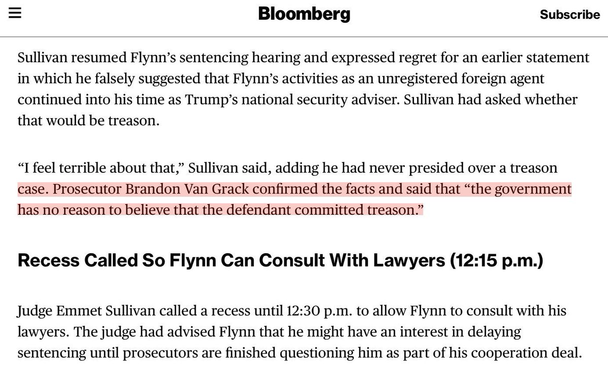 Prosecutor Brandon Van Grack confirmed the facts and said that “the government has no reason to believe that the defendant committed treason.” @Kira_Media @ProfMJCleveland @CassandraRules @LiglyCnsrvatari @McAdooGordon @jendubayevans https://www.bloomberg.com/news/articles/2018-12-18/ex-trump-aide-flynn-to-be-sentenced-in-washington-court-update …pic.twitter.com/Eg0rQ1xo5W