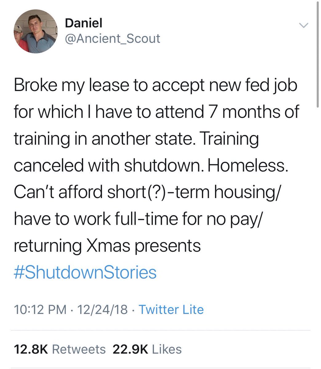 That doesn't make sense. How were thy going to pay housing before the shutdown? If they haven't started work it was not with the government pay. They had to have something lined up. Think it through