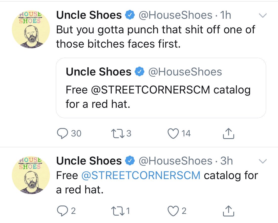 And this account is still open and active without twitter doing a thing. Jokes about Brussels sprouts or using the word tranny, however, that gets you locked up. Encouraging to “fire” on kids or “burn them down”...nada. Must be that damned algorithm again!