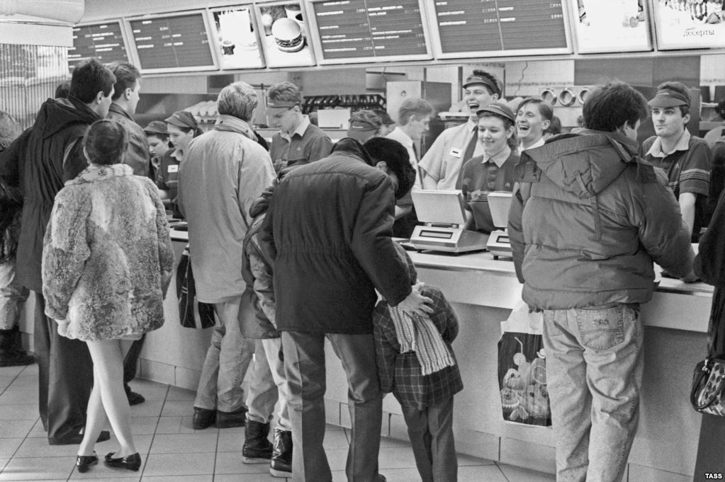 That writing is SO Bloomberg. The first McDonalds opened in Illinois. The first McDonalds in Russia opened in 1990.