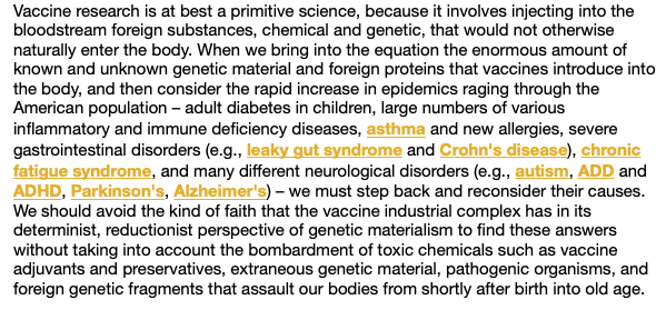 https://youtu.be/mMHlJlo89I0 Sally Fallon might shed some light on vaccines, diet, factory farming and childhood disorders. One of the most important minds in the world.