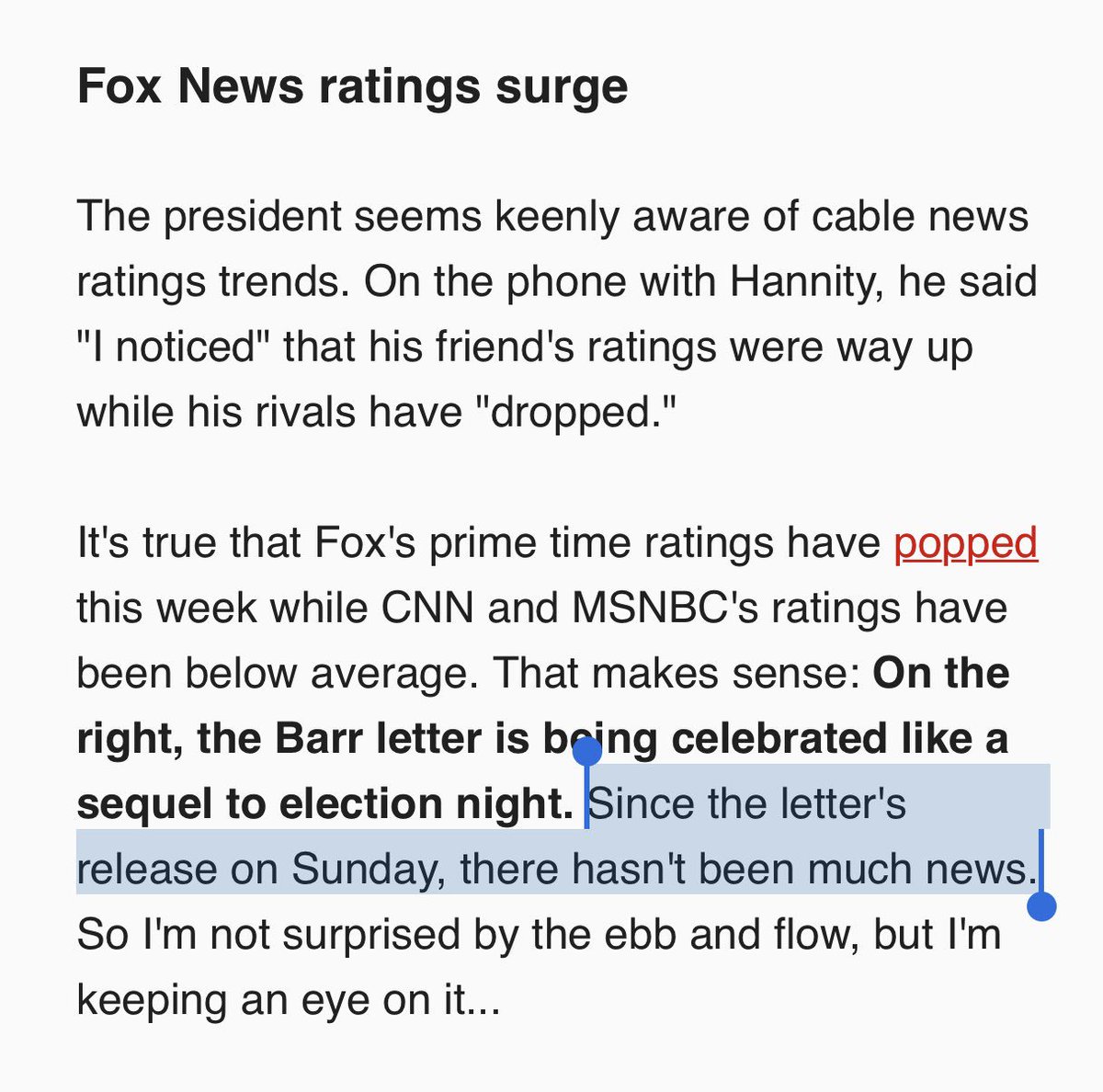 If its a slow news week (and its not, I can barely keep up) wouldn't it be a slow new week and lower ratings for everyone
