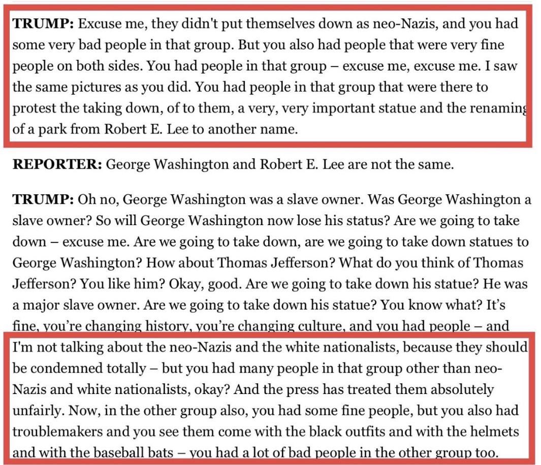 By pretending he didn’t condemn condemn neo-Nazis and white nationalists *totally*