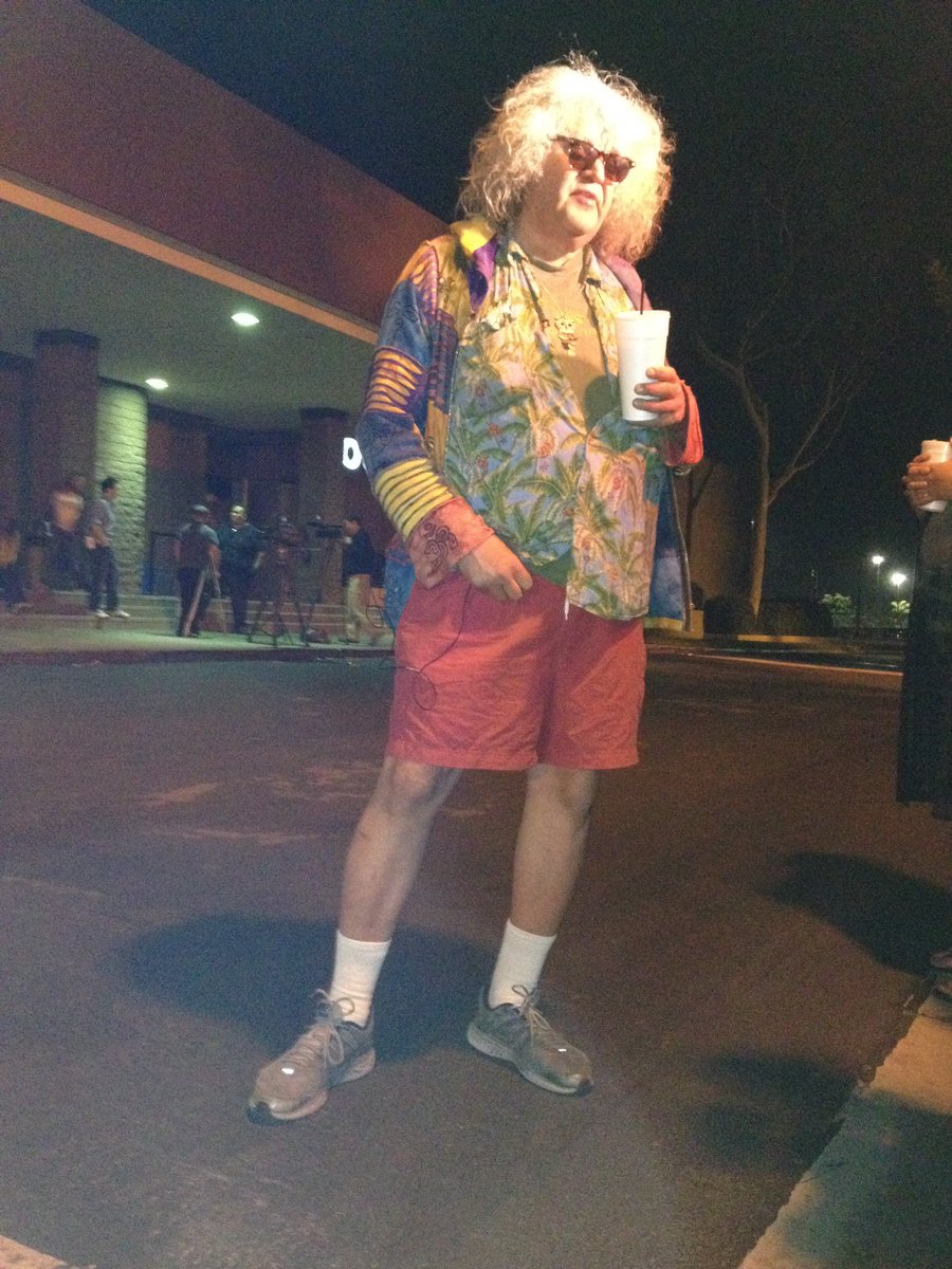 Took this picture of Jeff Dowd outside fountain bowl Lebowski Fest whilst on crutches.pic.twitter.com/Ac3bZXd1r1