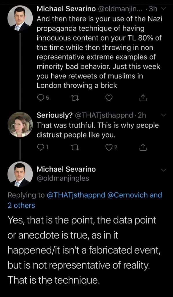 You said earlier that highlighting the negative whole igoring all positives of a group is a Nazi tacit. How does the SPLC’s method of only highlighting the worst and ignoring all of the rest of the work factor into your analysis or Nazi tactics?pic.twitter.com/2CvVa85h8W