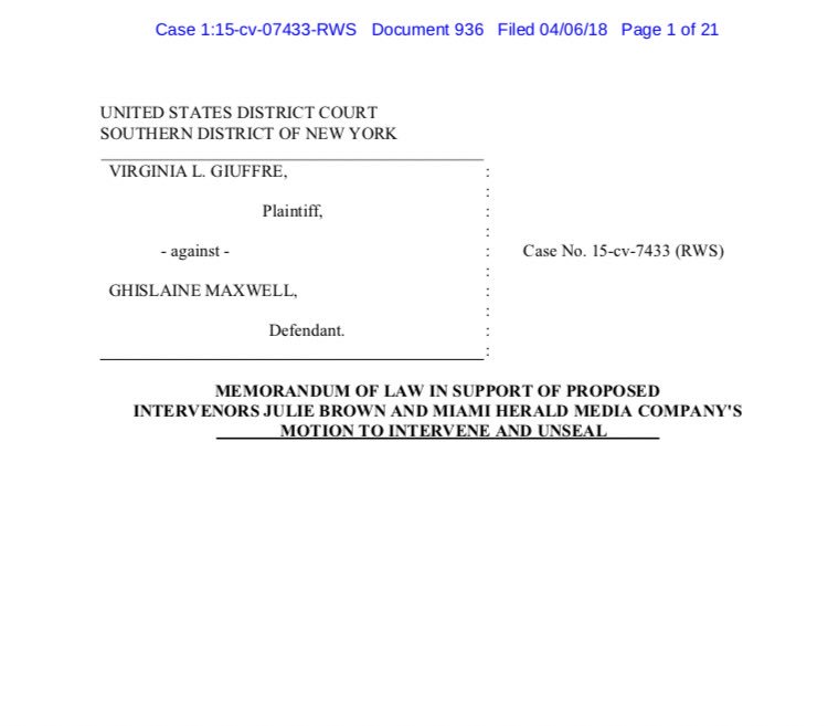 I'm sure @DonnaRapado has access to a Pacer account, so I'm not sure where the confusion lies: @Cernovich intervened in the #Epstein case on January 19, 2017. Politico reported on it in May 2017 and THEN 22 MONTHS LATER, in November 2018, the @MiamiHerald reported on it