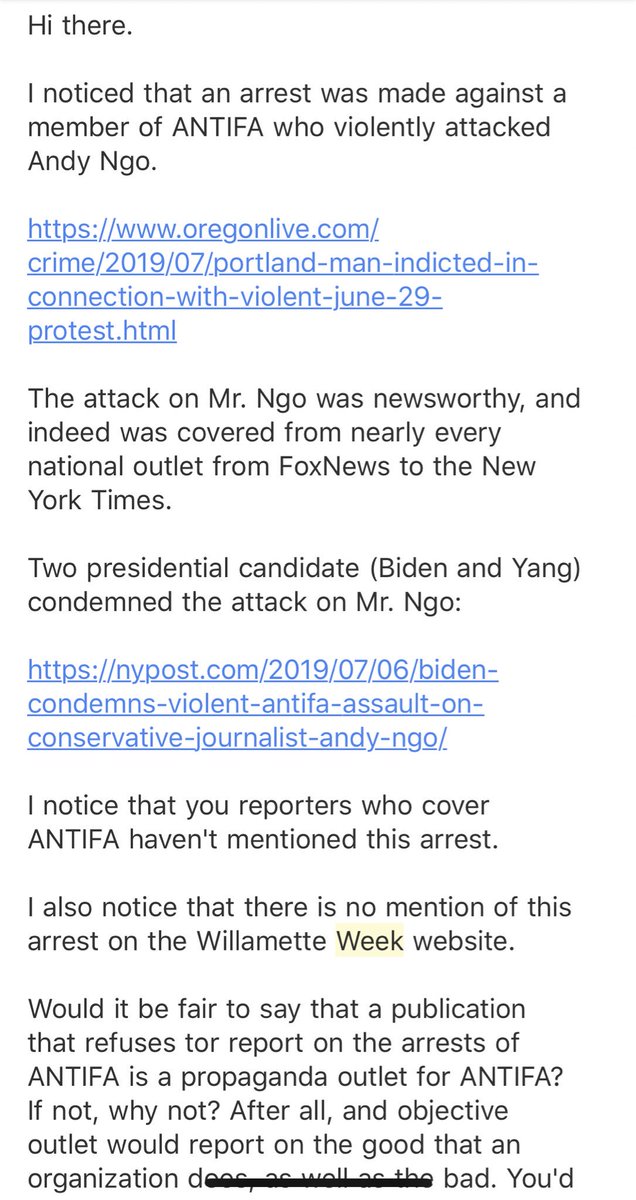 I put in a media request to a Portland newspaper asking why they are downplaying the violent attack on @MrAndyNgo.