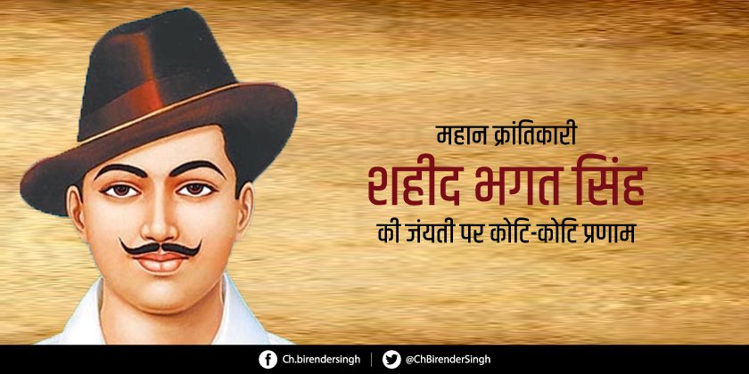 मातृभूमि की स्वाधीनता के लिए अपना सर्वस्व सर्पण कर करोड़ो देशवासियो के हृदय मे आजादी की अलख जगाने वाले महान क्रांतिकारी शहीद ए आजम भगत सिंह जी की जयंती पर उन्हे शत् शत् नमन।।