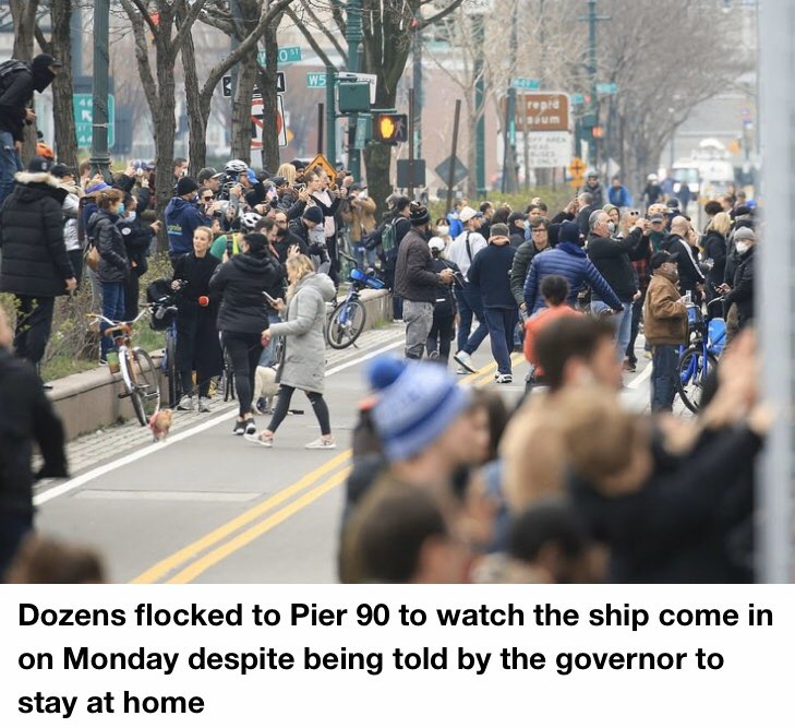 ATTN New Yorkers: people in their 30’s are being taken off life support because of Coronavirus and you’re out here en masse taking pictures of a boat?pic.twitter.com/M9gZ2iuxL5