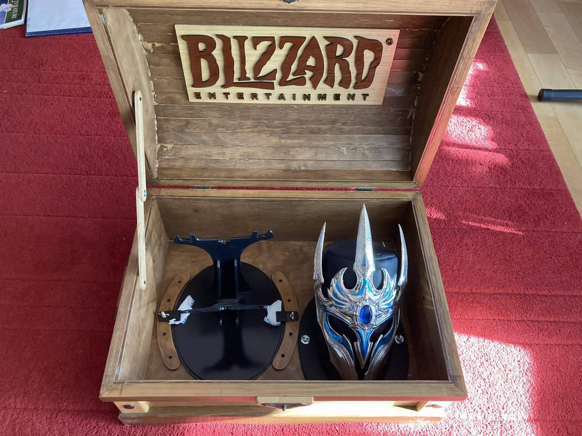 I was quiet about this back in October, but I passed my 20th anniversary at Blizzard then. A few days ago I picked up my helm. In a chest. My *helm*. In a *chest*.pic.twitter.com/BgBCikb1ww