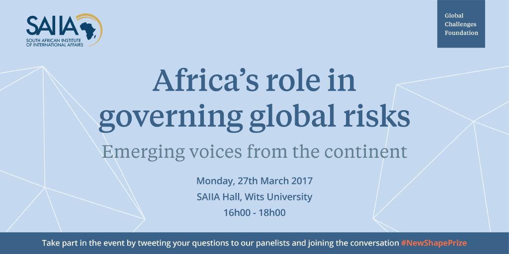 Africa's youths to step forward & discuss the continent's role in addressing global risks #NewShapePrize @SAIIA_info http://ow.ly/512e30adROy pic.twitter.com/6ljZX4s8sR