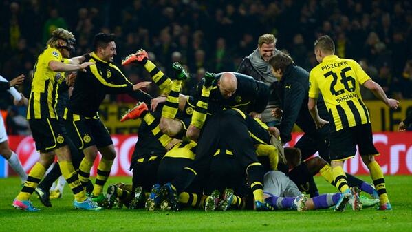 “@ChampionsLeague: How is this for a celebration? The @BVB players pile on top of each other after a dramatic win. pic.twitter.com/vDB1qb1h6D”