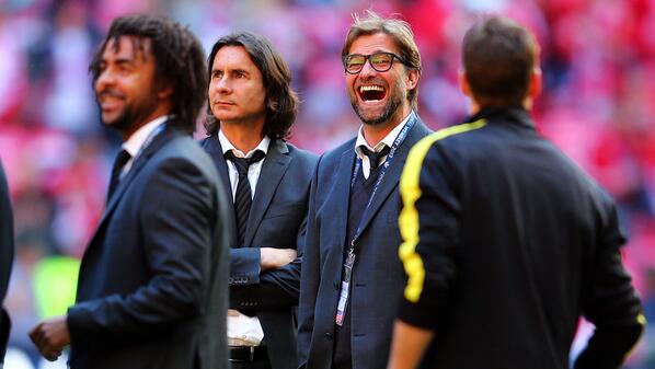 @ChampionsLeague: Jürgen Klopp is in jovial mood as he samples the@wembleystadium atmosphere#UCLfinal pic.twitter.com/zKf23HF2Oh” lolololol