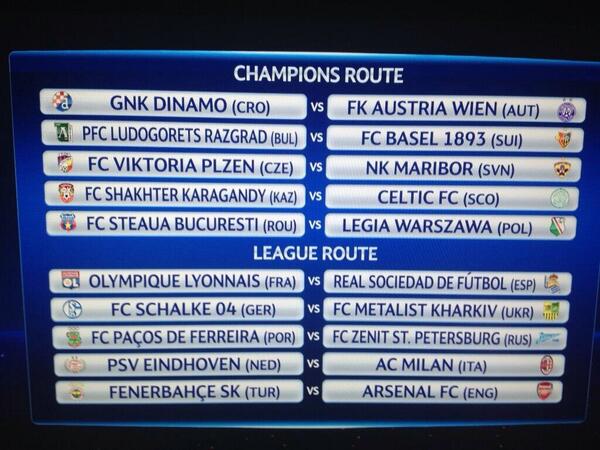 @ChampionsLeague: In case you missed it here is the#UCLdraw for the play-offs in full ... pic.twitter.com/PjlFLZCGiP” Tough draw for Arsenal