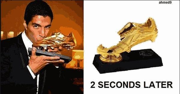 @ChampionsLeague is it true that Suarez did this to his brand new golden shoe ?#shokingpic.twitter.com/JXw5tDsrmD