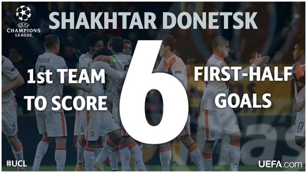 “@ChampionsLeague: Records tumbling as @FCShakhtar_eng become first team to score six #UCL first-half goals! pic.twitter.com/x94WZgiyyw”