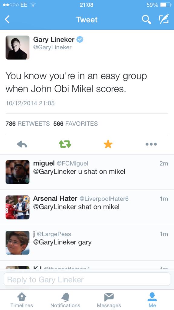 @ChampionsLeague: A very rare sight... Mikel celebrates scoring for@chelseafc#UCL pic.twitter.com/2mmJhidYif” That's because he's shit.