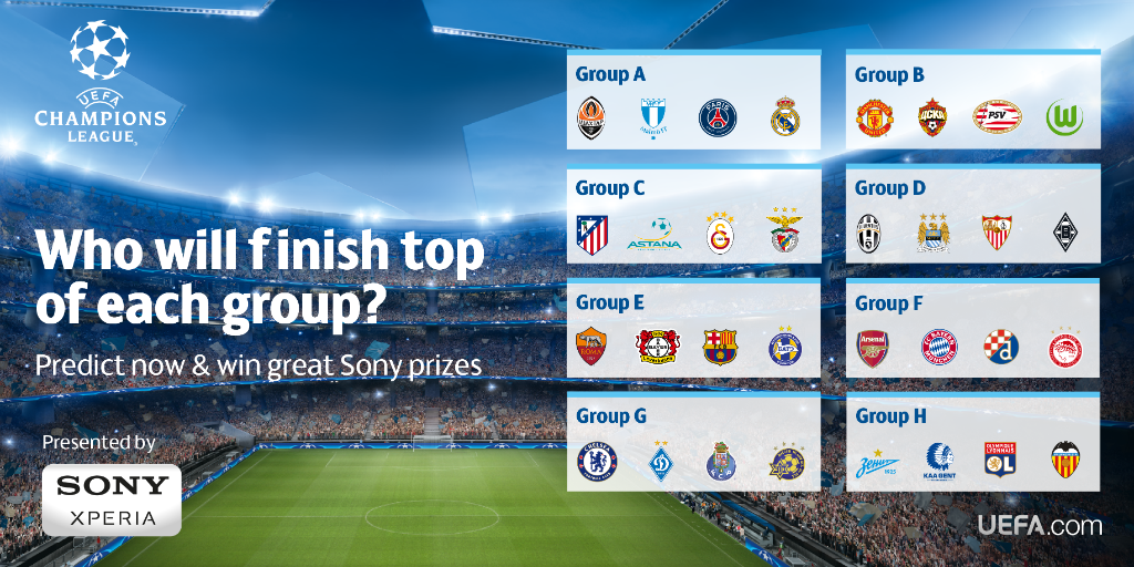 Get your group predictions in... Midnight CET deadline! Will Real Madrid pip Paris in Group A?http://en.uclpredictor.uefa.com/championsleague/group_predictions …pic.twitter.com/TTPpw4Us2h