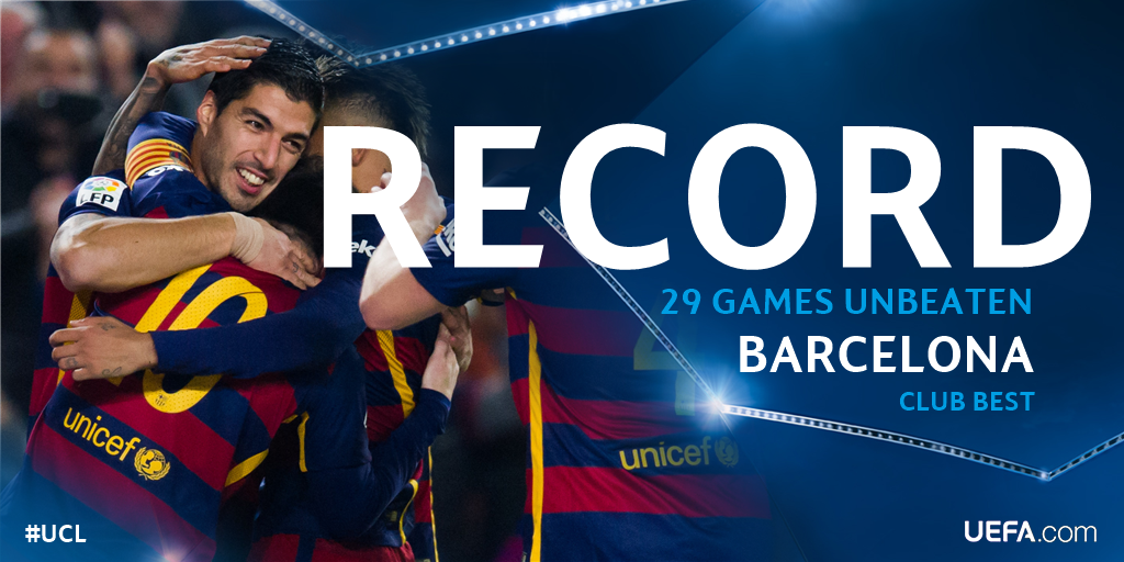 During their 29-game unbeaten run Barcelona have scored 87 goals and conceded just 15. #UCLpic.twitter.com/pLFznsJvNX
