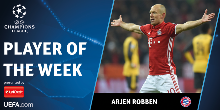 BRAVO @FCBayern winger @ArjenRobben, who wins the #UCL fans Player of the Week vote!