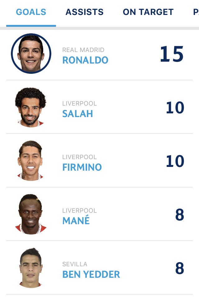 Salah has played more games then ronaldo this CL and is still 5 behind him